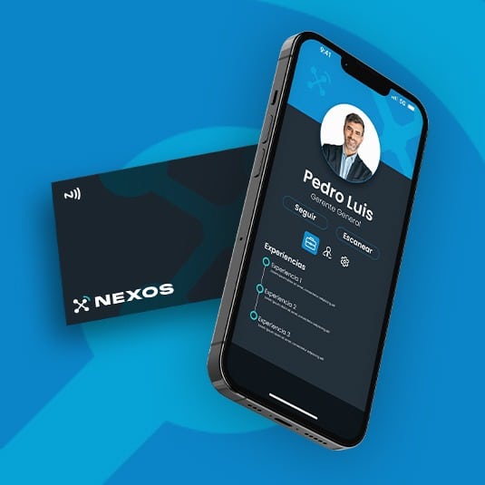 Con las tarjetas de presentación NFC personalizadas de Nexos, no solo conectas más rápido: transformas tu forma de hacer networking. Comparte tu perfil digital, sitio web o redes sociales con un solo toque y obtén métricas clave para optimizar el rendimiento de tu equipo comercial.